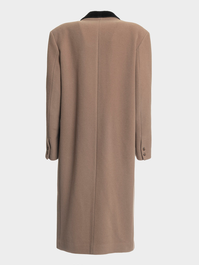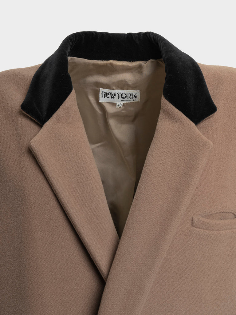 Brown coat with black velvet V neck