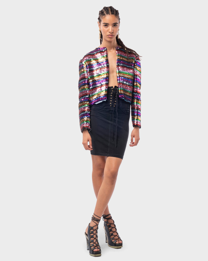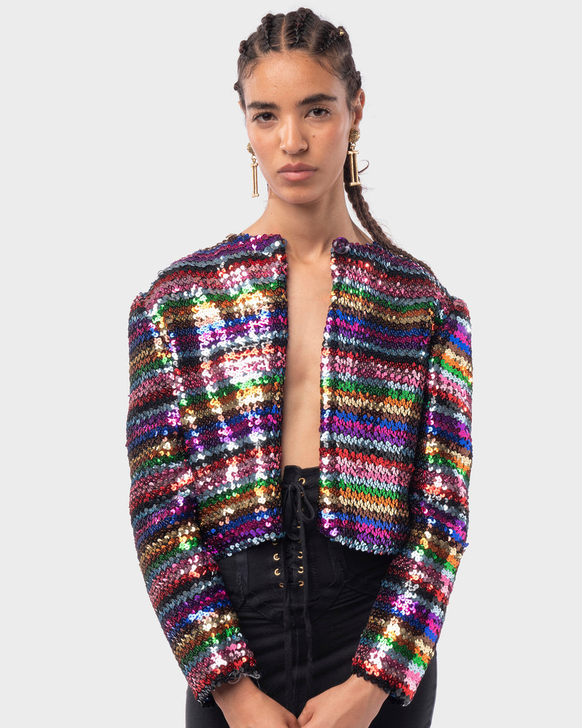 VINTAGE 80S SEQUINED MULTICOLOR SHORT JACKET