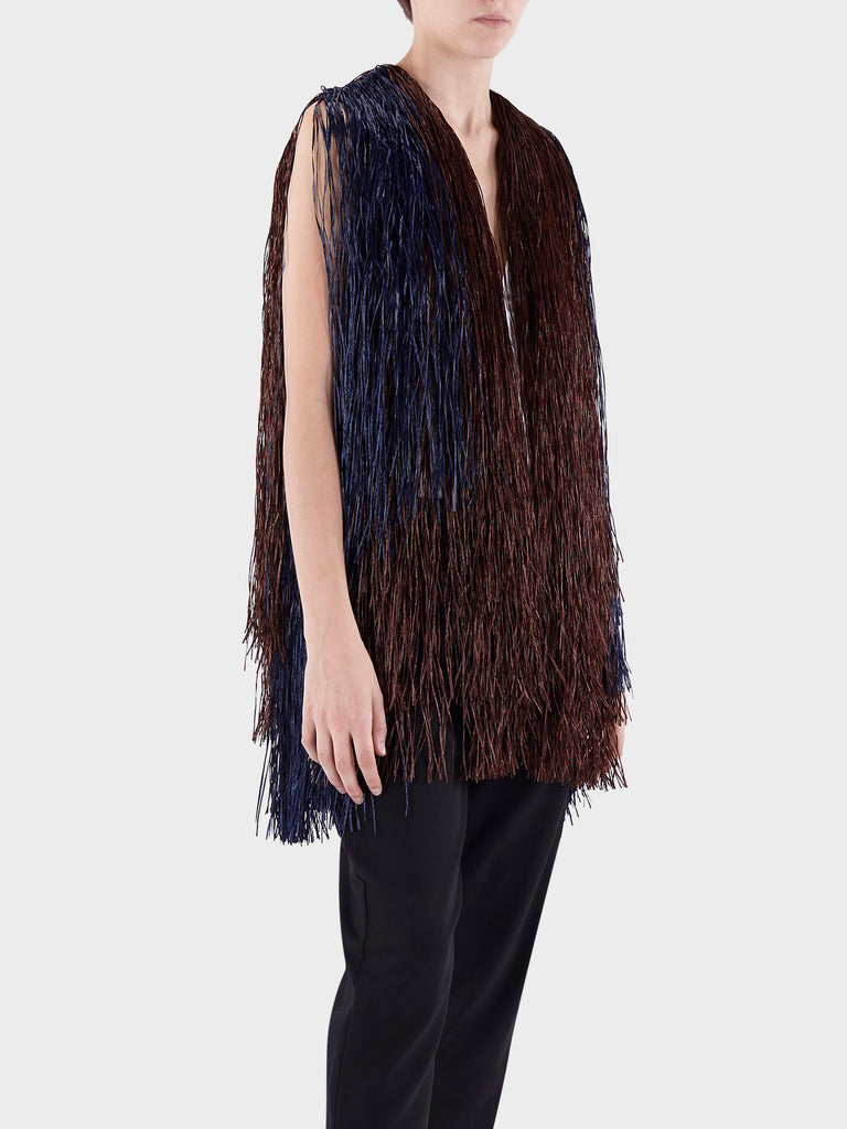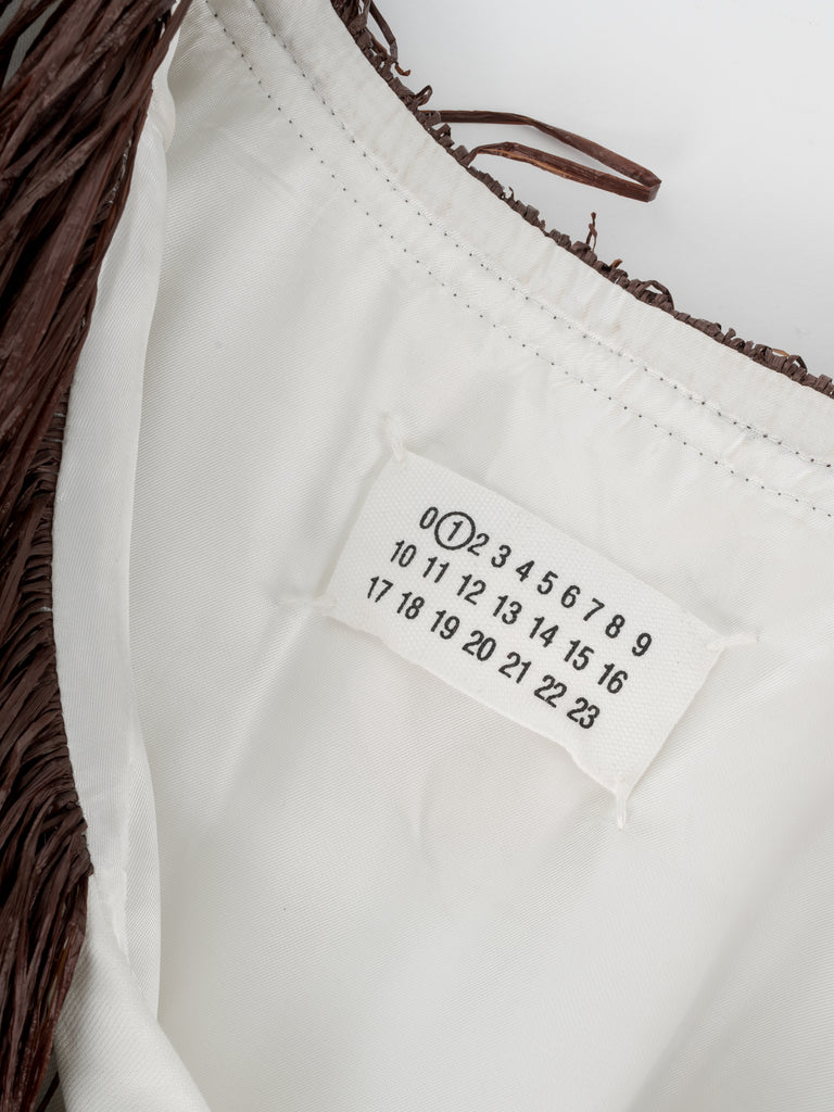 Maison Martin Margiela two toned raffia fringe waistcoat with a cotton lined interior. The waistcoat is from line 1 and is very edgy. Very good condition ( grubby marks to the white viscose lining ; email for detailed pictures )