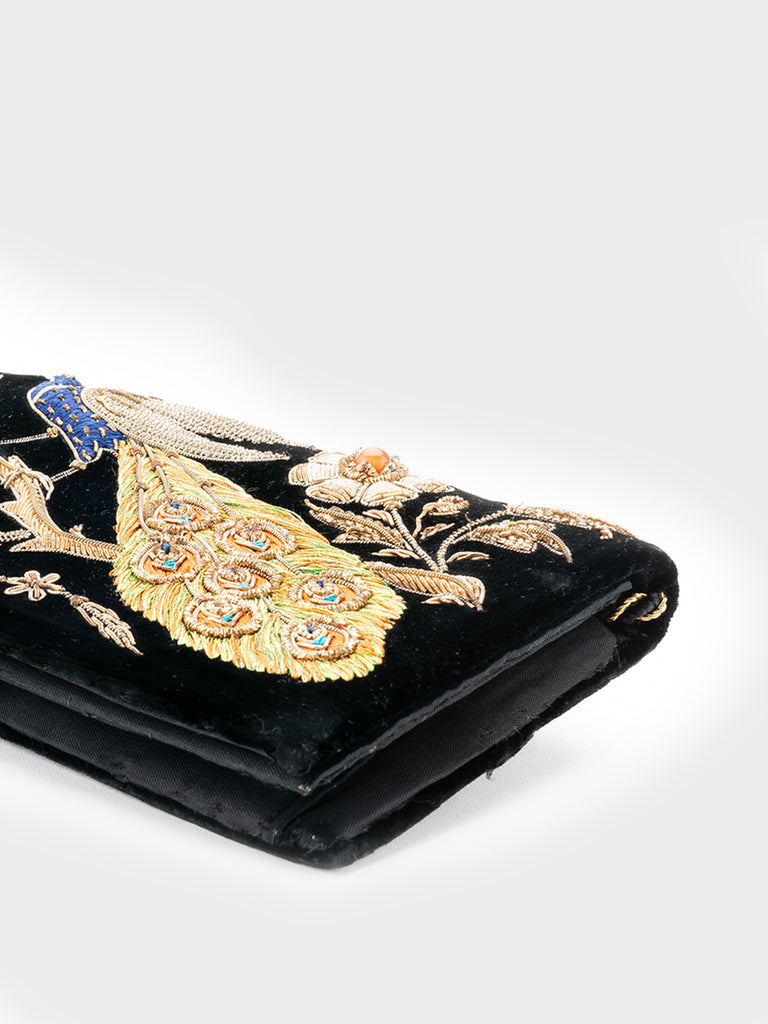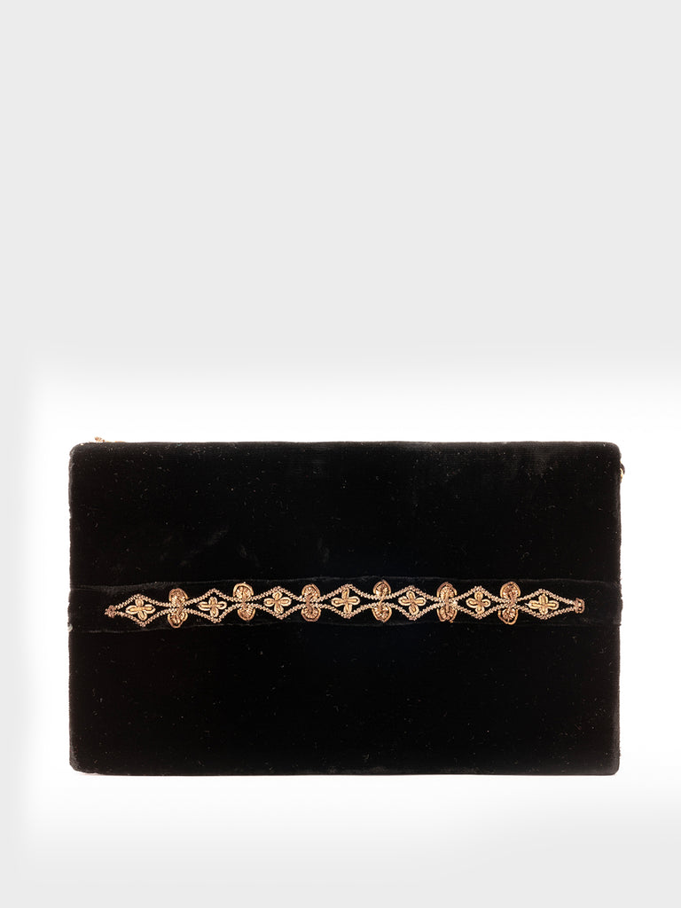 Borsetta vintage 60's in velluto con pavone ricamato con filo metallico