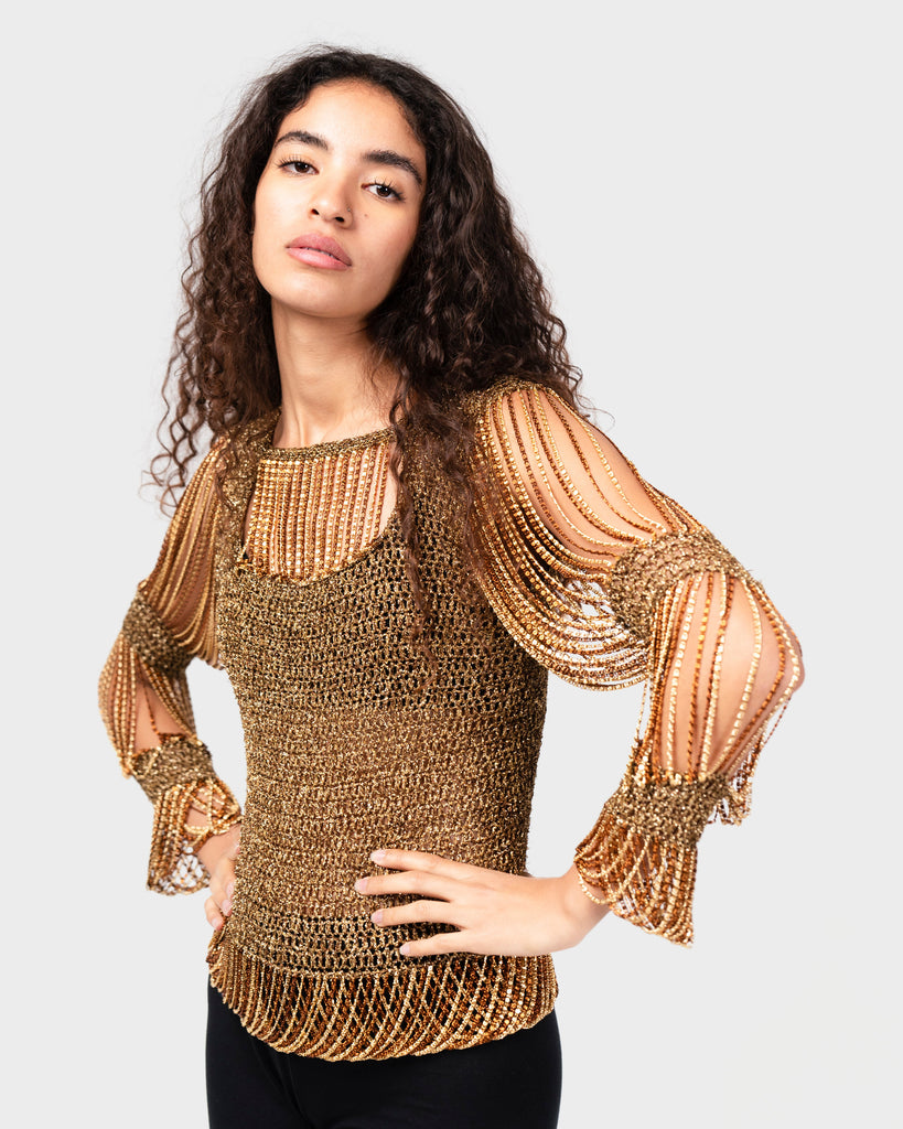 Gold metal chain and lurex knit