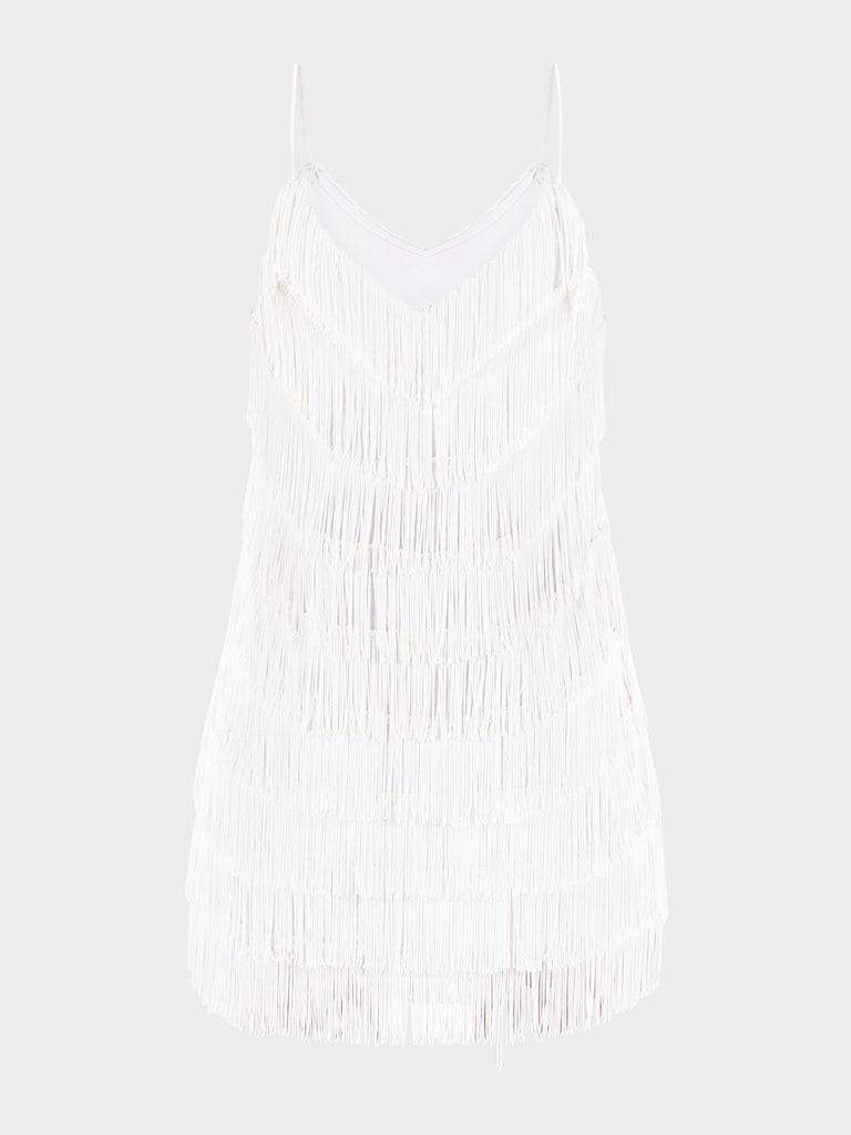 Lunghezza 78 cm - larghezza petto 43 cm - larghezza vita 43 cm - larghezza fianchi 48 cm - lunghezza scollatura fine abito 57 cm senza frangia - 65 cm con frangia