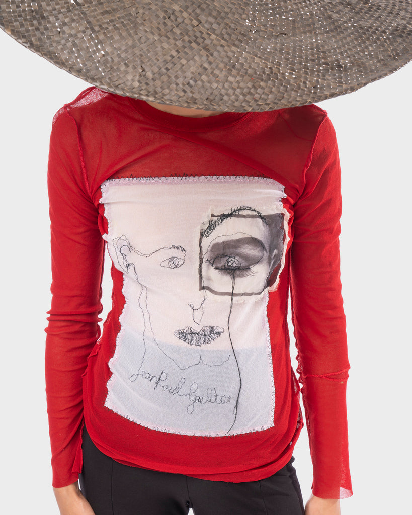 Vintage 90s sheer mesh long sleeves top with signature JPG